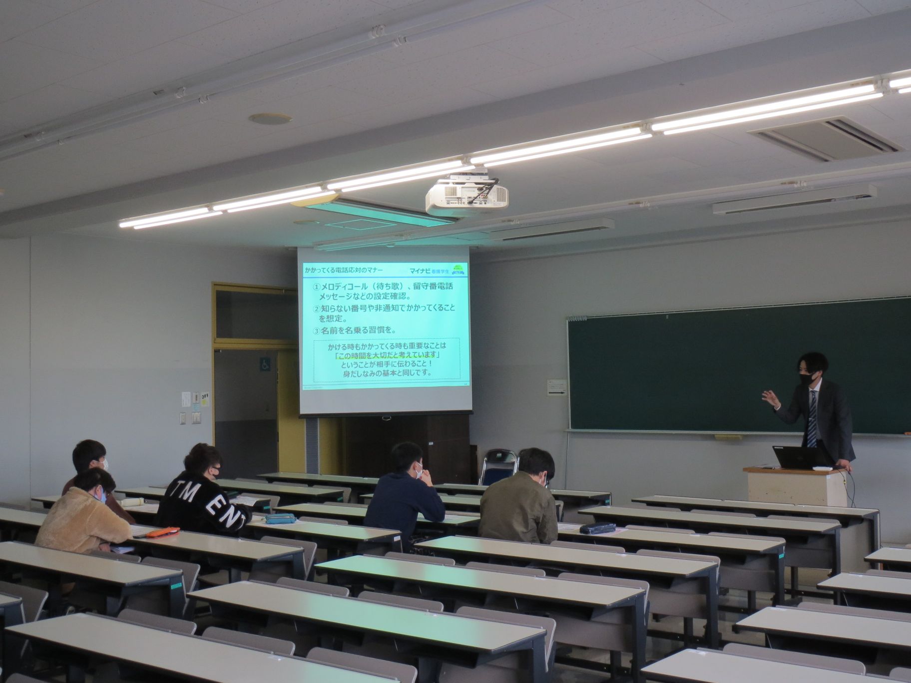 マナー講座の前半は、2年次生全員で病院実習に対応した「態度や話し方等の講義」を聞いた後、
