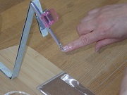 爪を切るための自助具、片手でマニキュアを塗るための自助具の紹介、体験を行いました。作業療法では、例えば、肩や肘、手、指の動きがよくなるよう訓練を行いますが、病気によっては、改善が難しいこともあります。そのような機能の改善が難しい場合、できなくなった動きを補う道具(自助具)を使用して日常生活を送れるよう支援していきます。