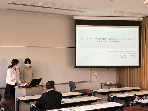 過日、基礎看護学領域で卒業研究を実施した学生の卒業研究発表会が開催されました.