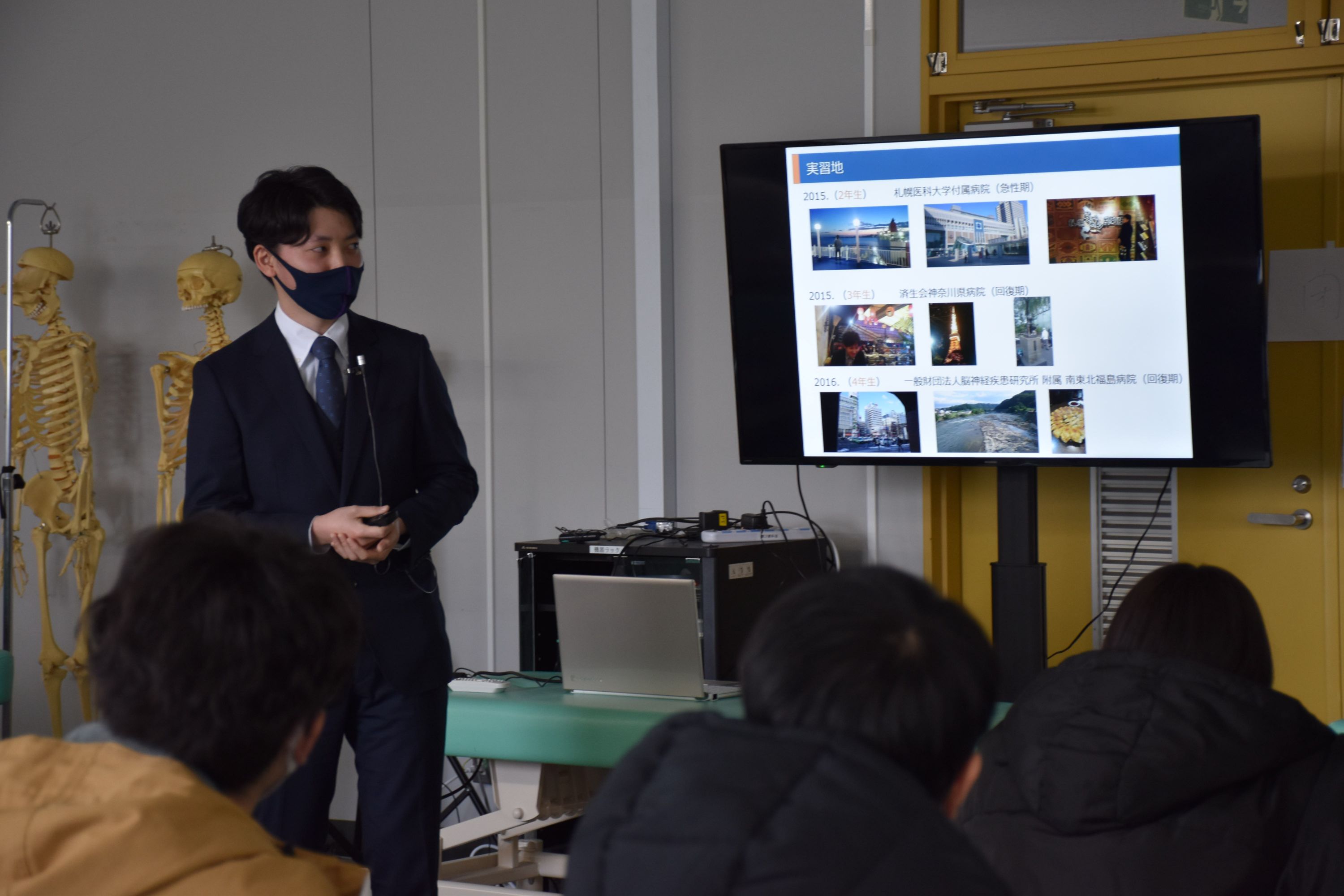 ↑本学卒業生 大場勇輝先生(愛子整形外科)の講義の様子