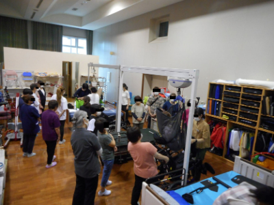 国からの「腰痛予防対策指針」に?される “??による抱え上げを?わせない” を受け、リフトの体験を行いました。