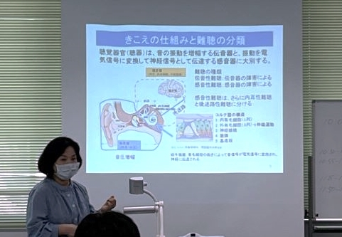 聴こえが悪くなるとことを「難聴」といいますが、年齢による聞こえの変化について参加者と会話を交えながら学びました。