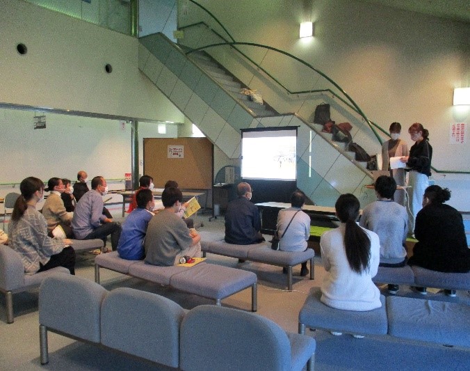 フォーラムにお集まりの市民の皆様に発表している様子です。