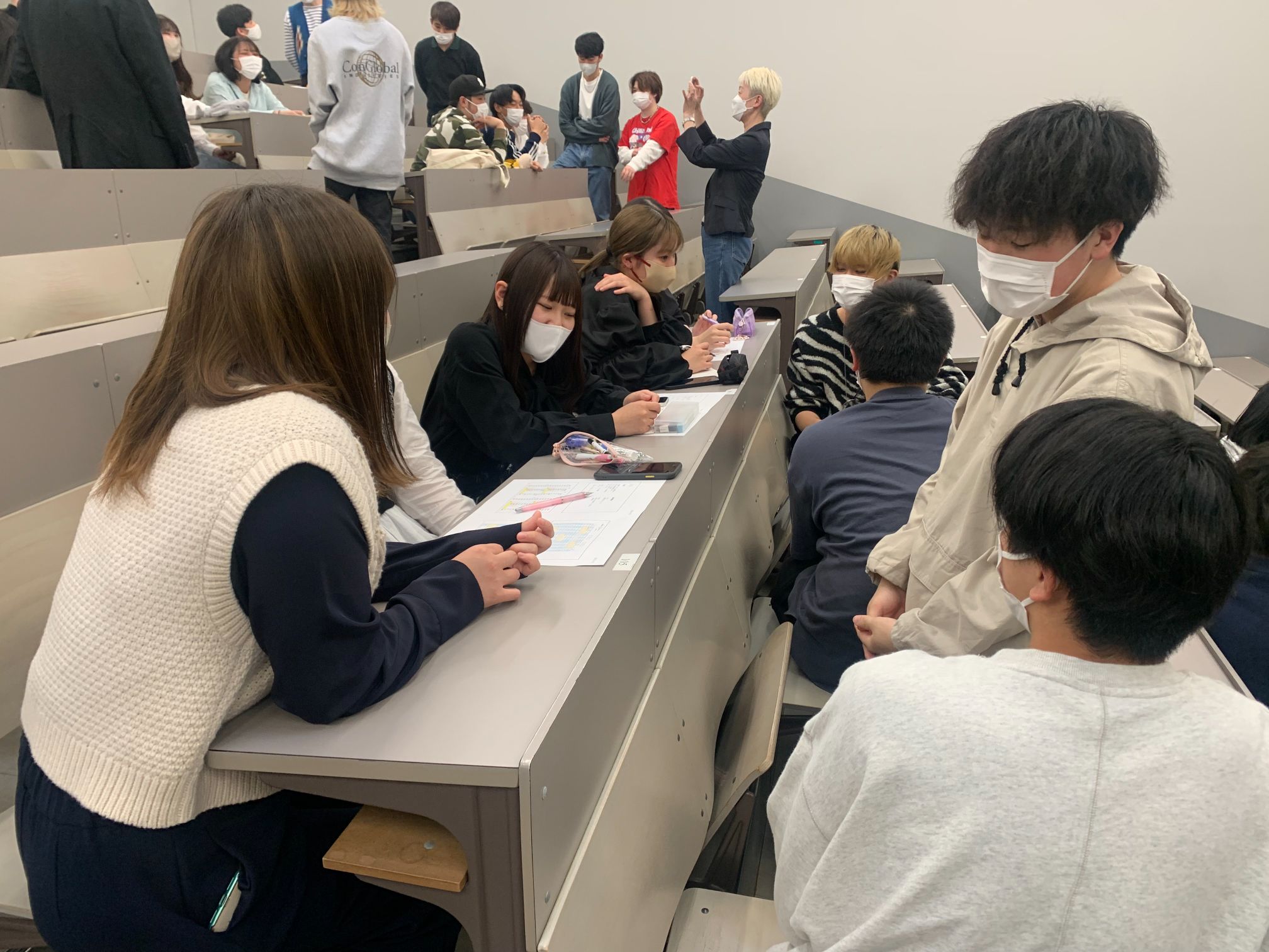 交流を目的に現代社会学科で、1?2年生合同のグループワークを行いました!