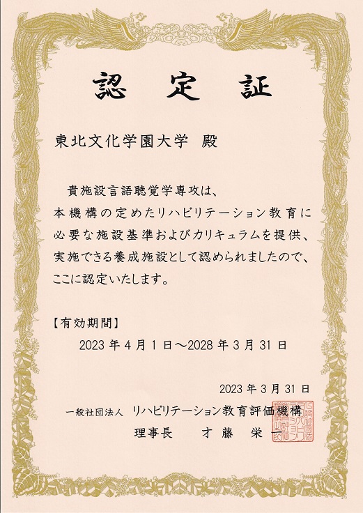 【言語聴覚学専攻】リハビリテーション教育評価機構認定