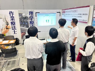 理学療法学専攻では重心動揺計測の体験ブースを設け、自身の重心の位置や、足部の形態等を視覚的に確認してもらいました。