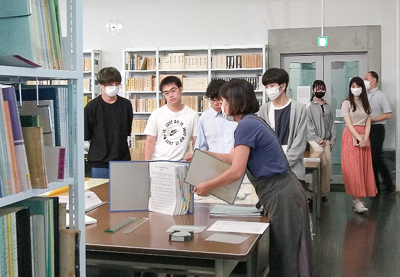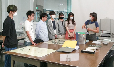 公文書館の資料の活用方法についてのレクチャーを受ける様子