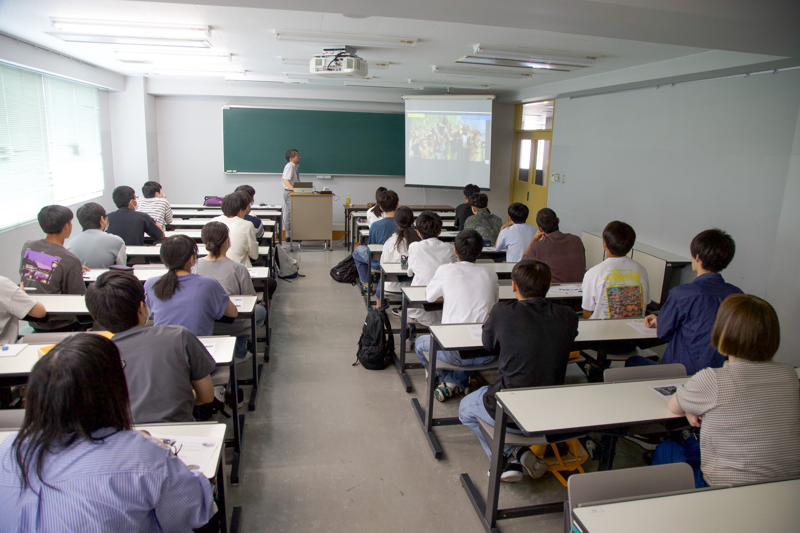 社会学専攻の模擬講義では、「狩猟採集民の社会から考える私たちの暮らし」と題して岡教授が講義を行いました。