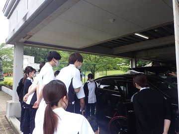 特に脊髄損傷者のご来校は4年ぶりです.3名の異なる障害レベルの方から普段使用する福祉用具や改造した自家用車を見せていただき,これらを使用する生活動作も教えてくださいました.今まで教科書で見た写真は実際に目の前で動いており,大変勉強になりました.