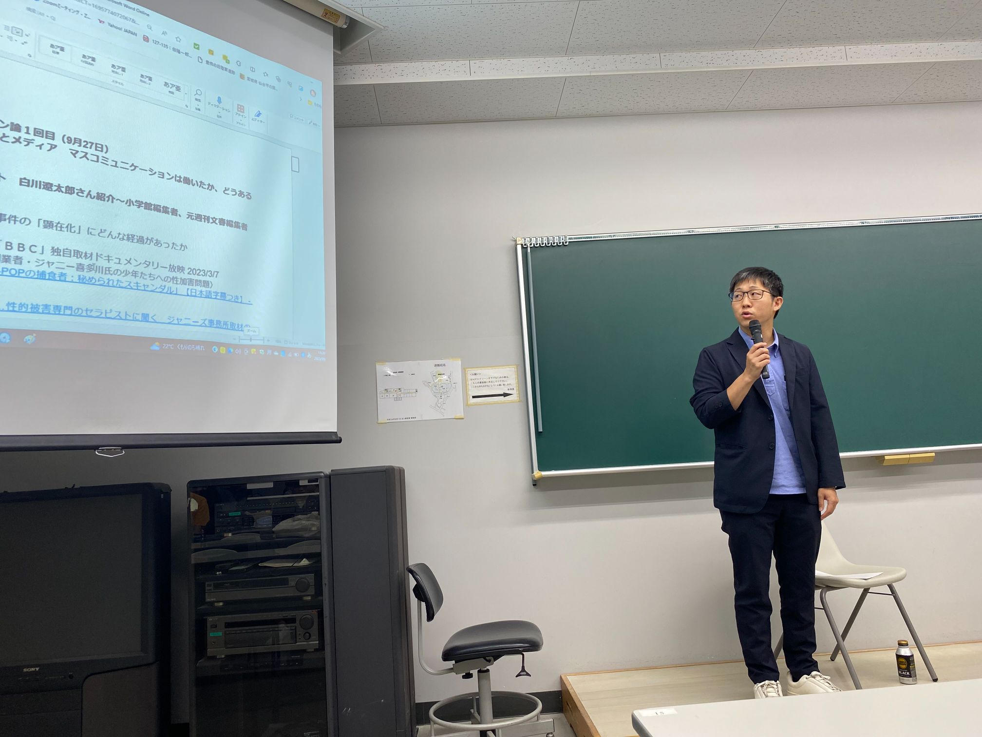 現在では世界中から注目され,未成年への性加害問題のみならずメディアの報道姿勢や責任が問われるまでに発展しているこのニュースについて,肌で感じた現場の様子を伝えていただいたり,学生からの質問にお答えいただいたりします。