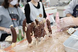 屋台村「今日、焼き鳥にしない?(2年生)」「チョコバナナ(3年生)」