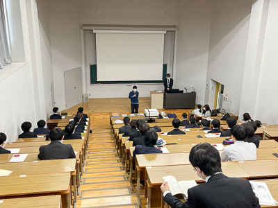 3年次学生は今後の就職活動の参考にすべく熱心に聴講していました。