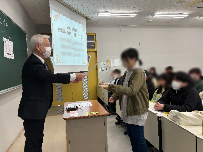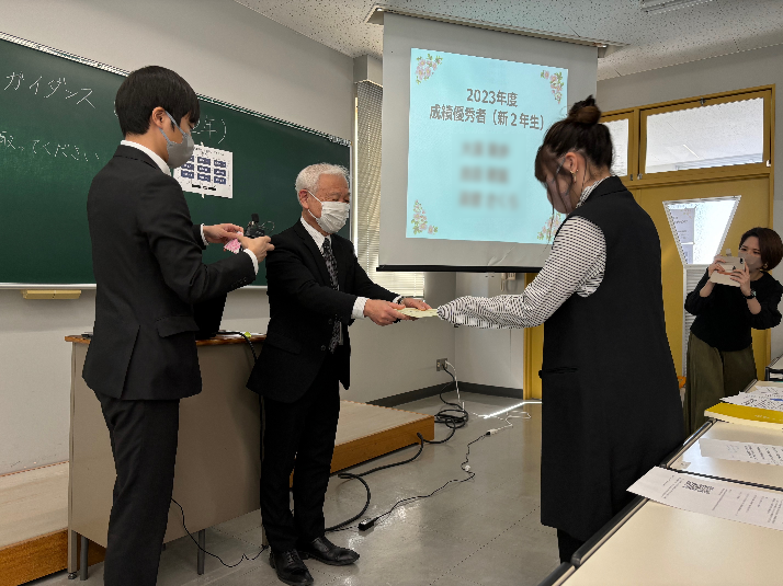 また,ガイダンスでは前年度の成績優秀者上位3名が学年ごとに表彰されました。