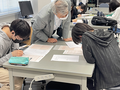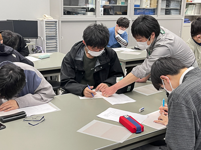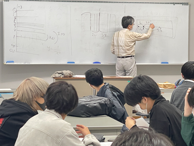 鈴木伸夫教授が講師を務め、指数関数?対数関数とデータ処理の解説を行いました。その後、学科教員総出で演習指導に参加し、アクティブラーニングを実践しました。新1年生たちは対数目盛の意味を理解して方眼紙に関数のプロットを練習しました。講座を通じて、「はじめて対数の意味が分かりました」、「楽しかった」などのコメントが寄せられました。