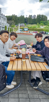 今年度、初の企画として、教員ごとに新入生と在学生の交流会を行うことになり、馬内グループで新入生6人と上級生6人が大学周辺を歩きました。