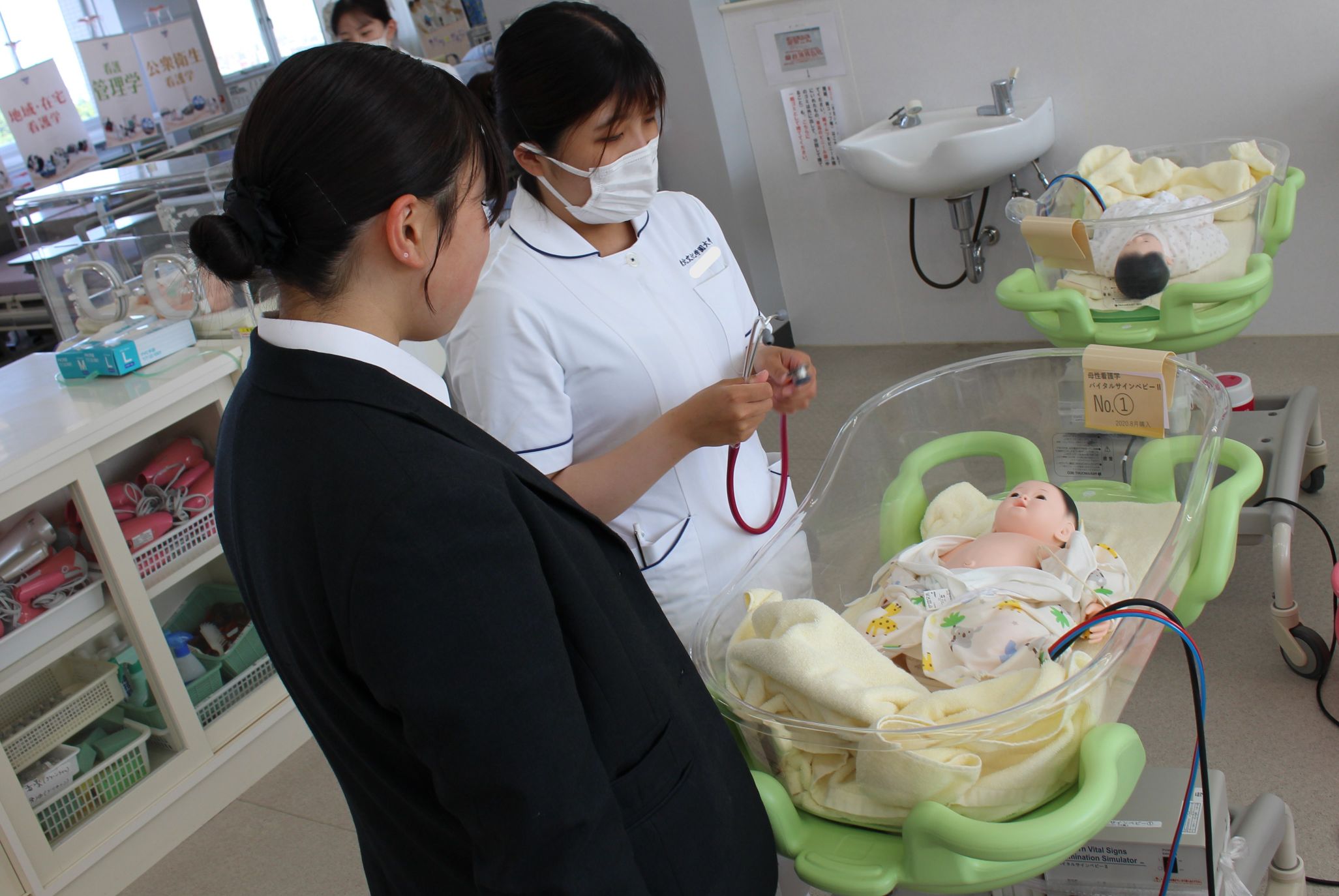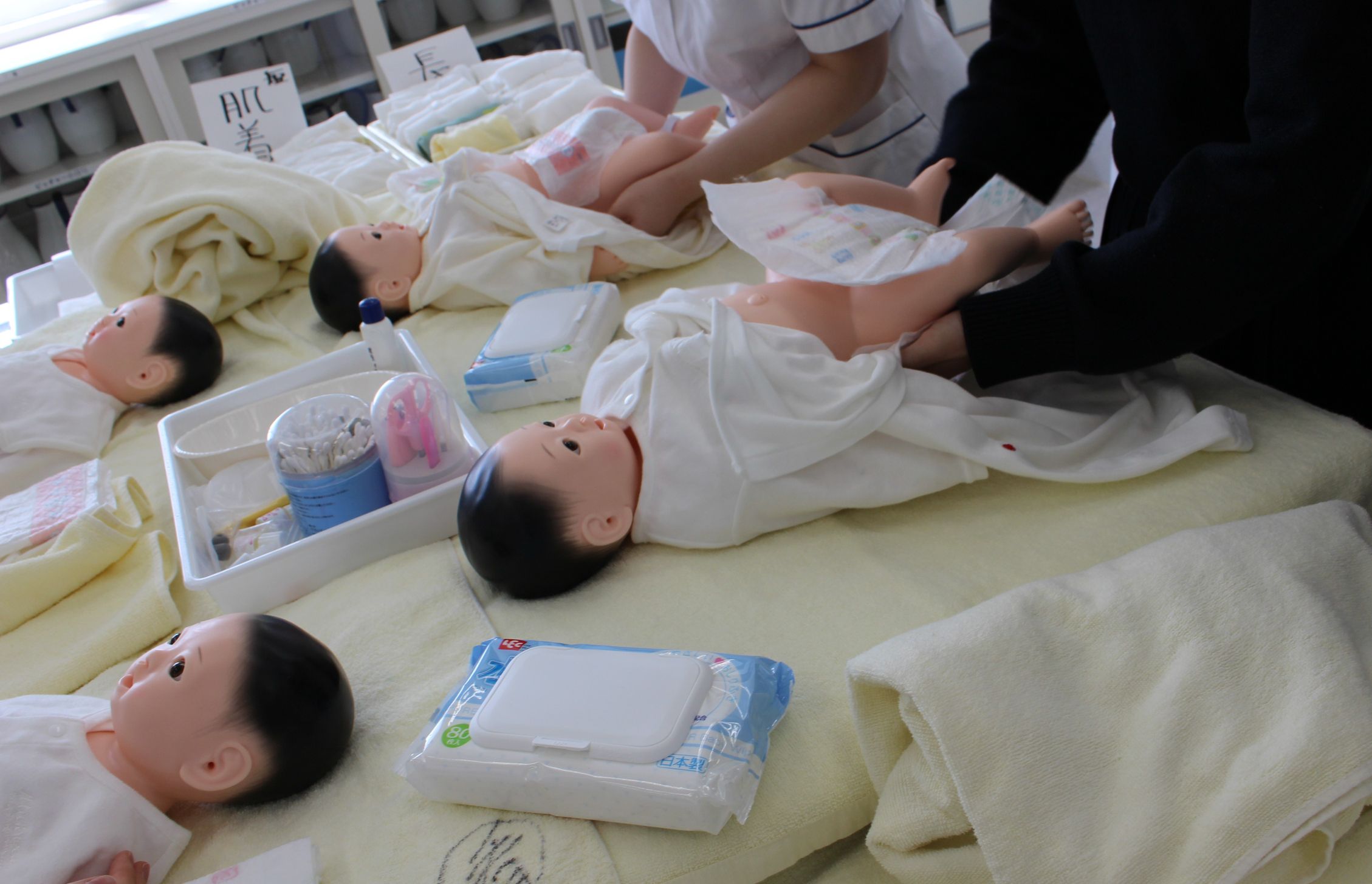 赤ちゃんのブースでは、おむつ交換や赤ちゃん用の小さな聴診器を用いて