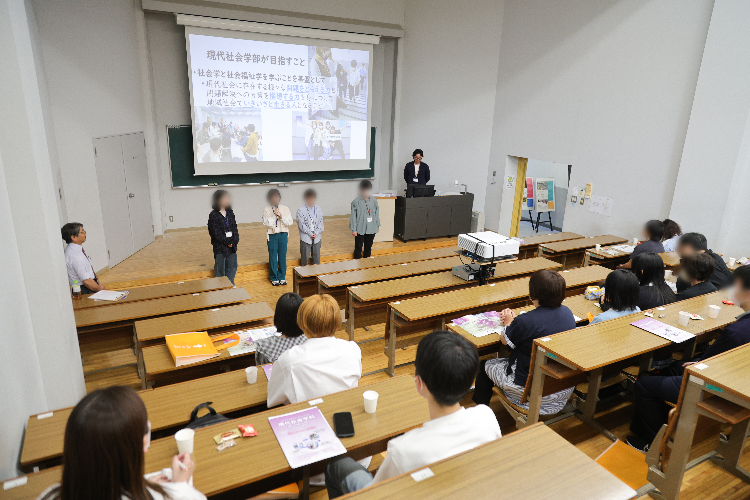 現代社会学科では、まず学部学科の特色や入試について説明を行いました。