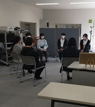 ③支援学生の体験談と質疑応答:今回は支援学生として言語聴覚学専攻の1年生と3年生に協力してもらいました。参加者の皆様とグループになって、育成塾の体験談などを話してもらいました。