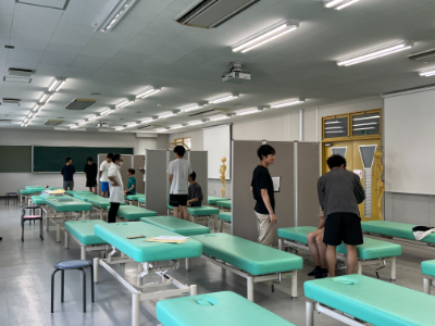 1年次前期科目の「基礎セミナーⅡ」は、医療人としての態度を育成することや、理学療法の基礎となる体表解剖と機能解剖学について学習することなどを目標に行われる科目です。
