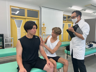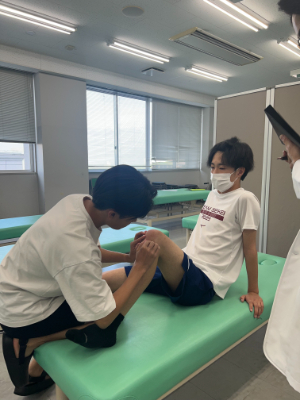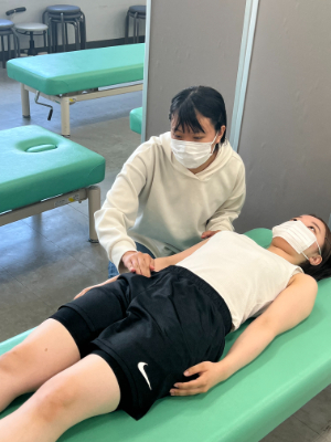 後期の「基礎セミナーⅡ」では筋の触診を学びます。臨床現場で通用するレベルまで技術を磨いていって下さい!