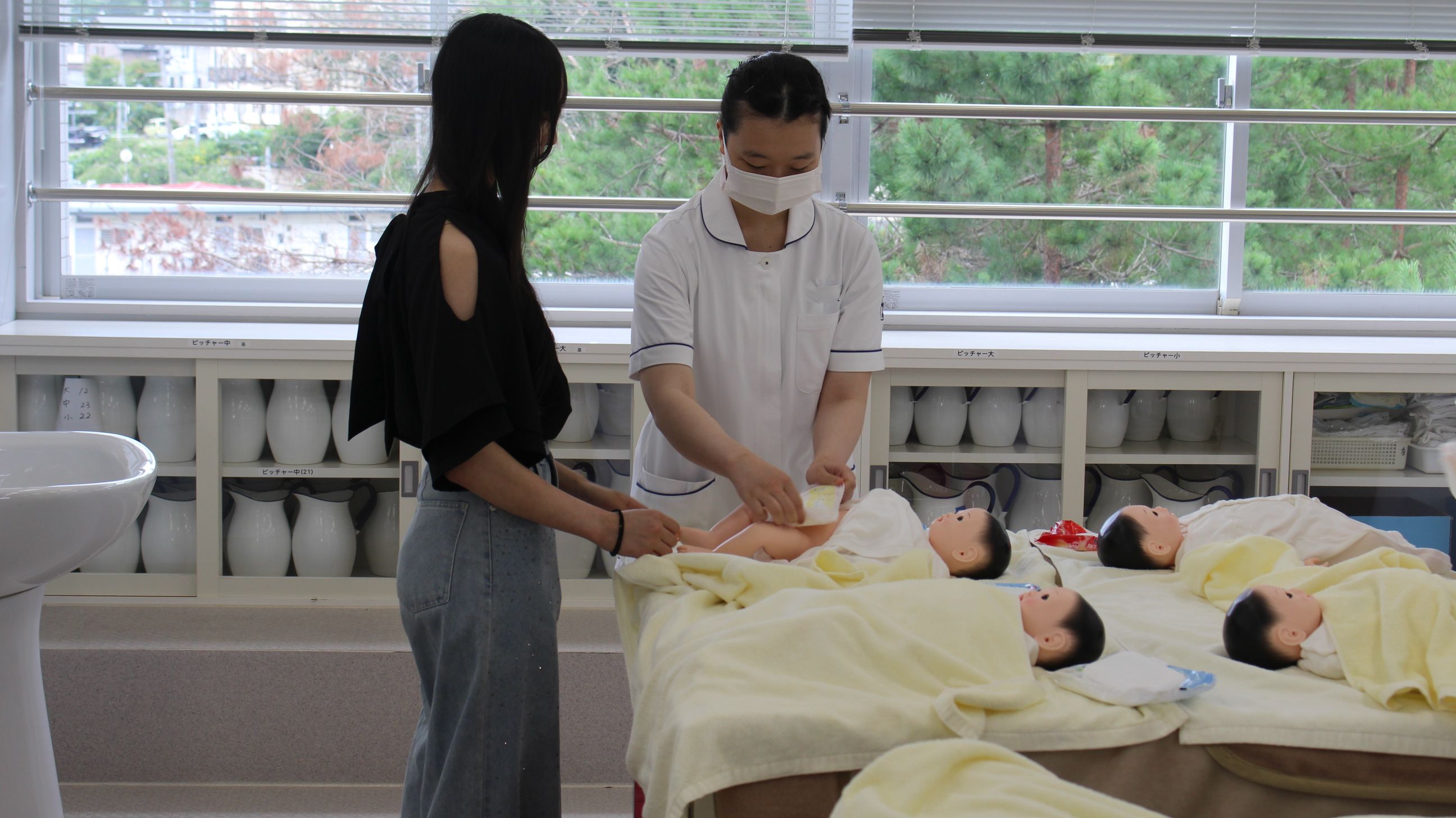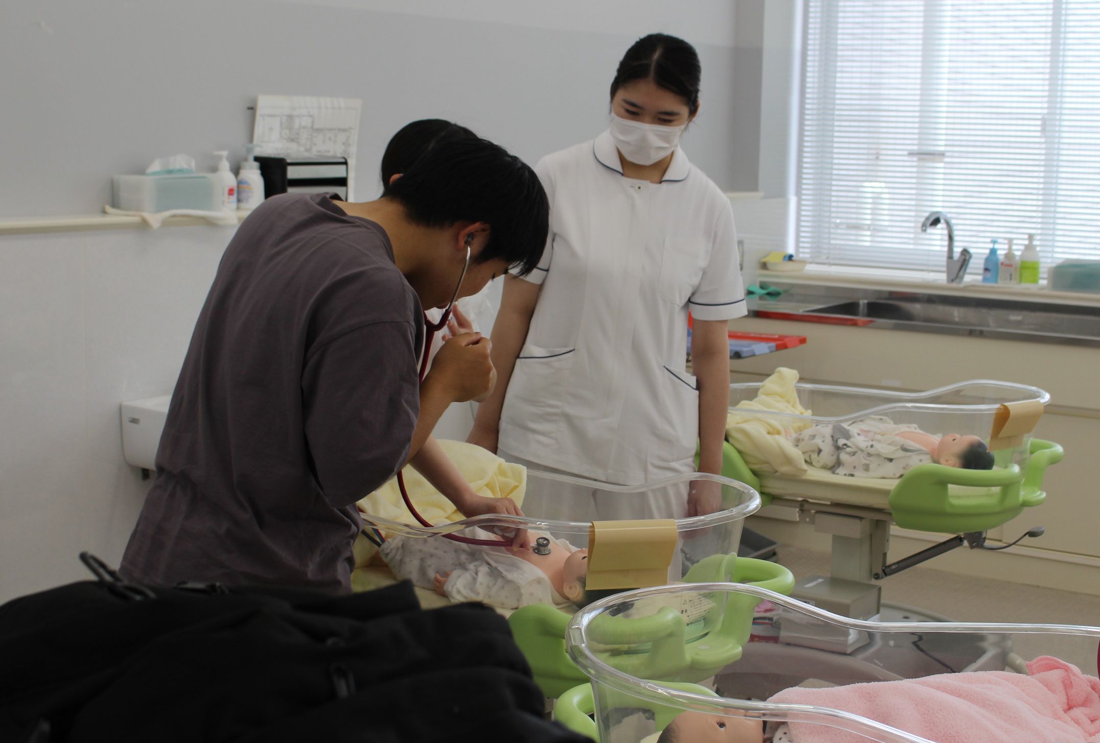 母性看護学では、赤ちゃんと妊婦さんの観察を行いました。