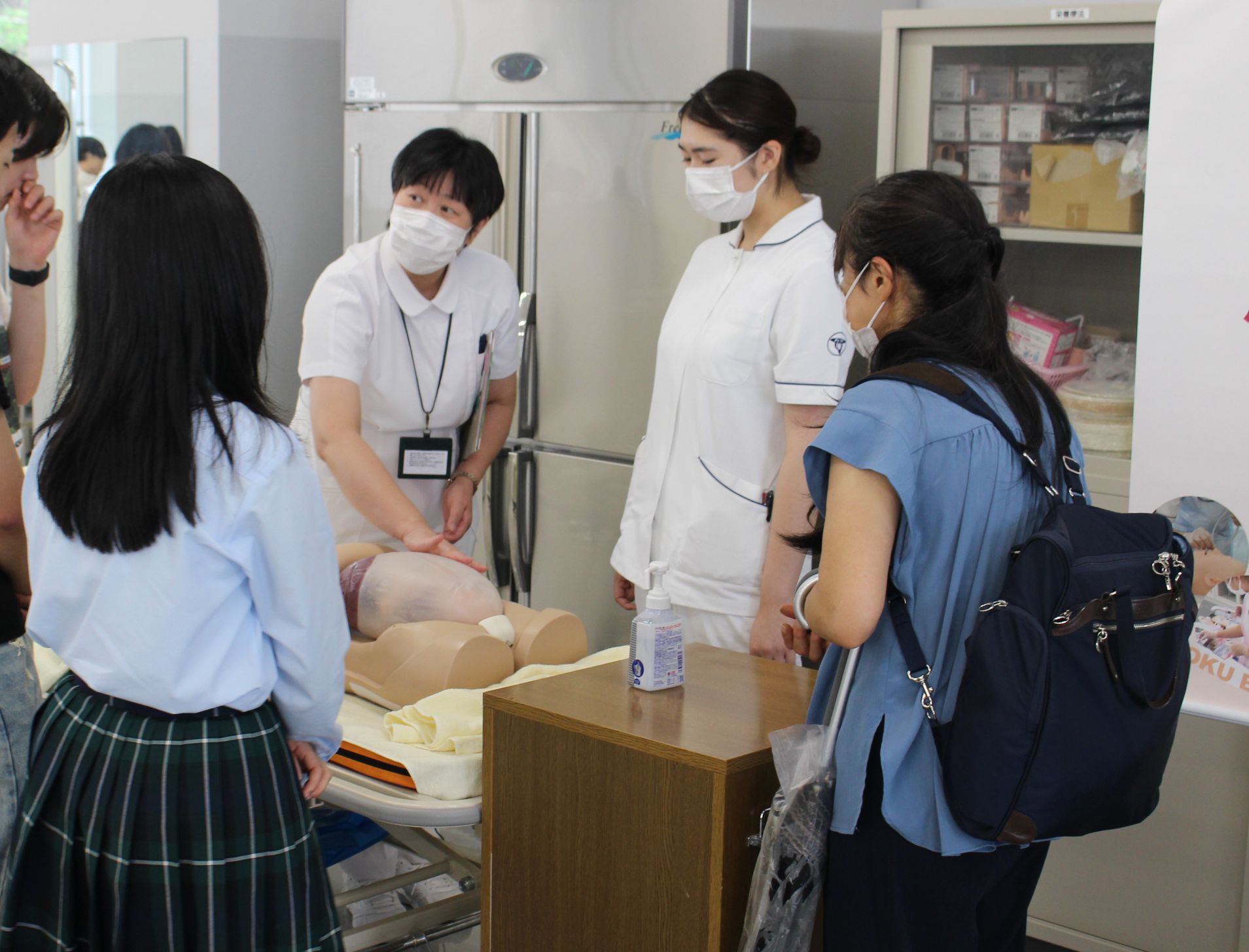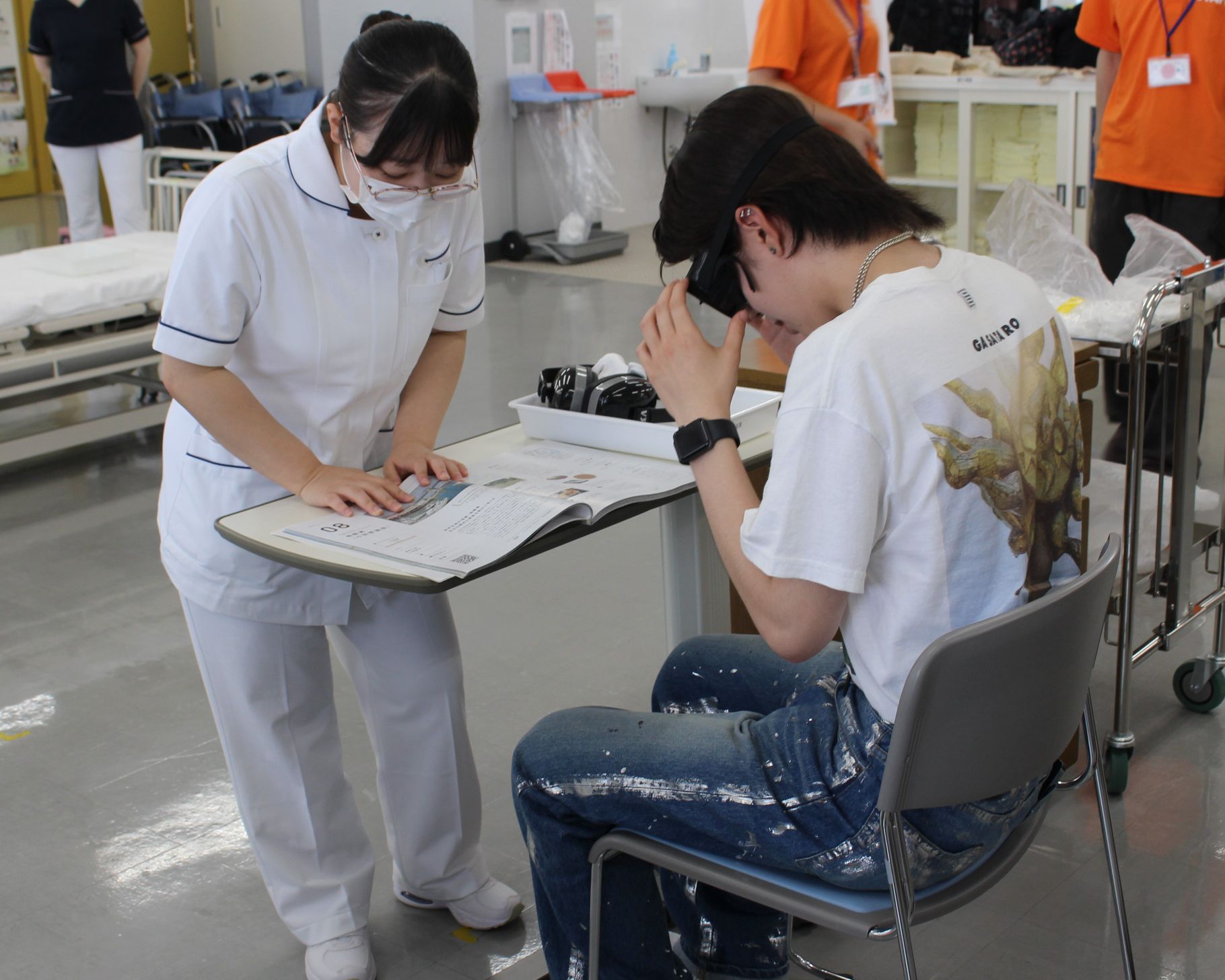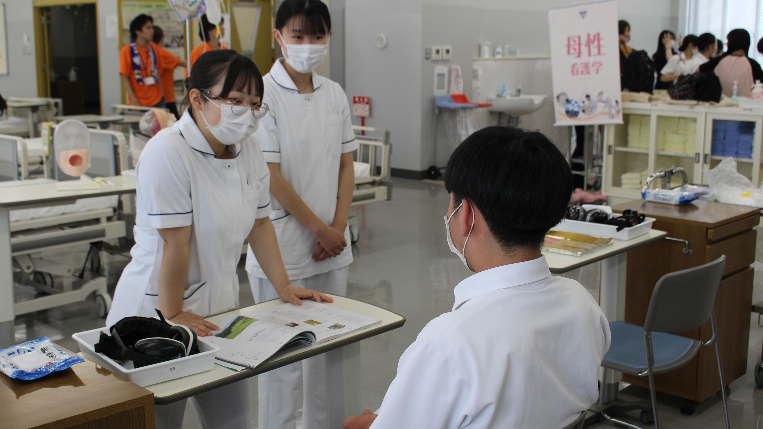 看護学生が参加学生のみなさんに丁寧に説明を行っていました。