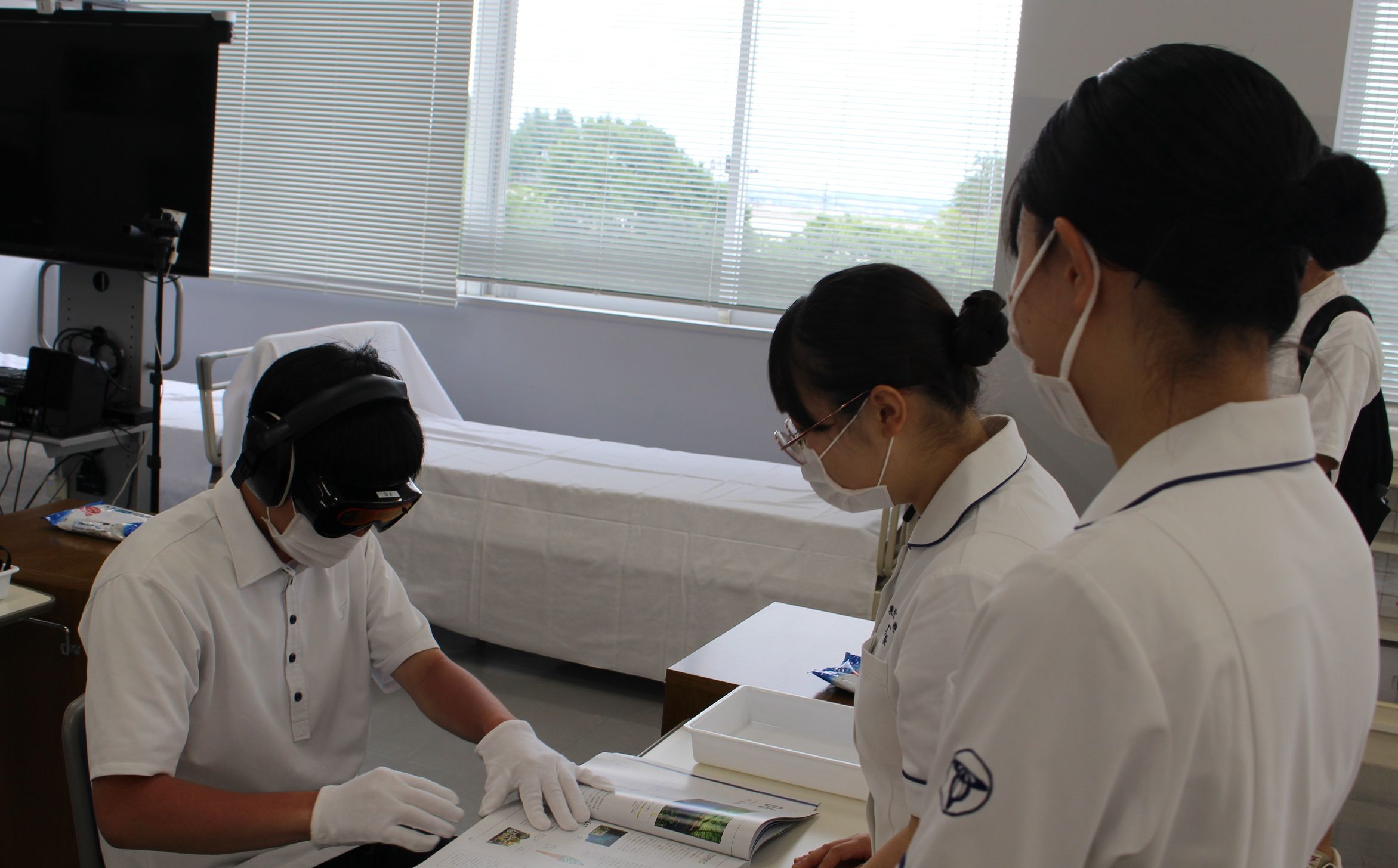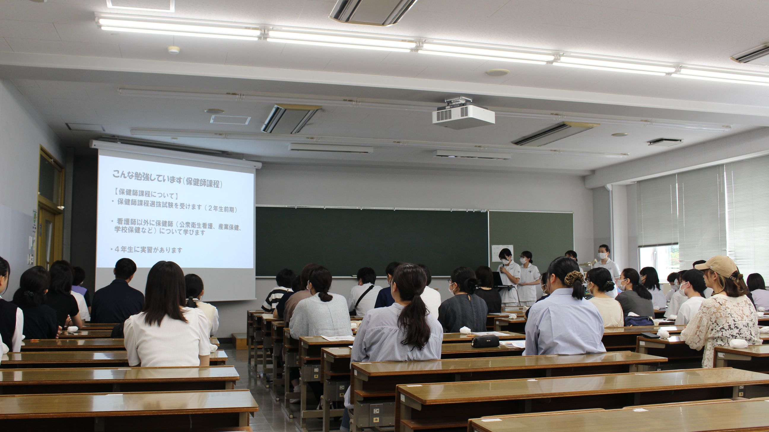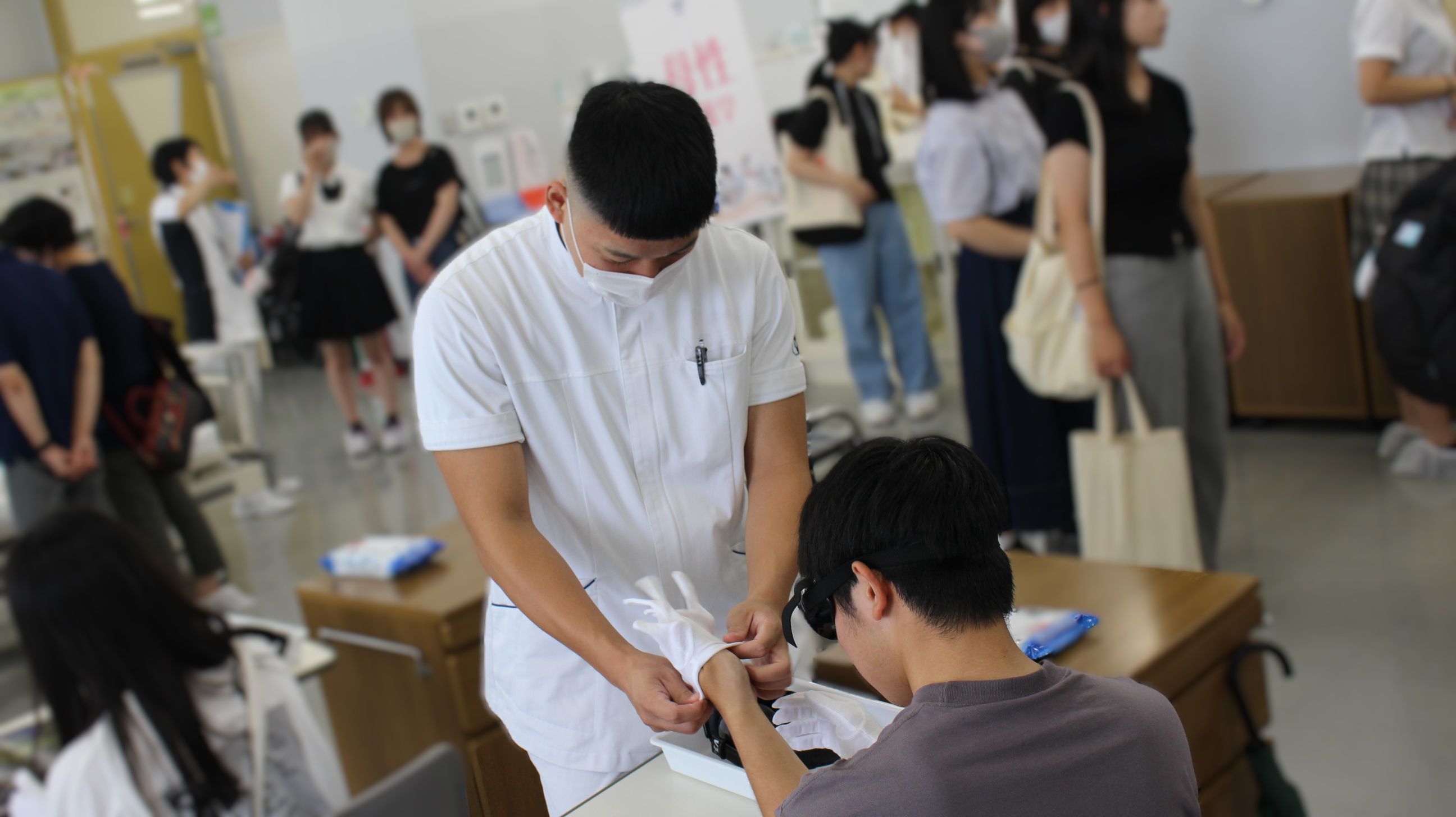 看護学生が参加学生のみなさんに丁寧に説明を行っていました。