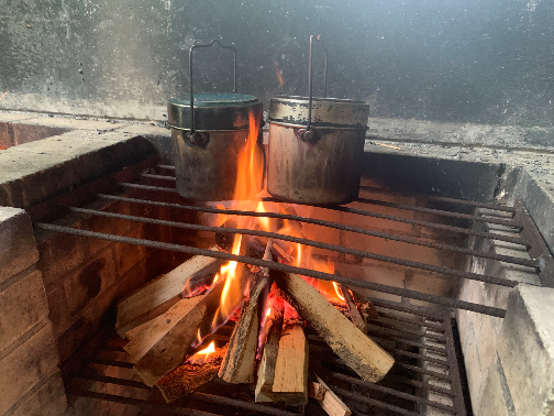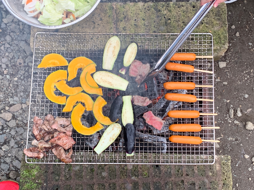 初日の夕食は、火自分たちで火おこしした炭火でのBBQで、最高でした?!