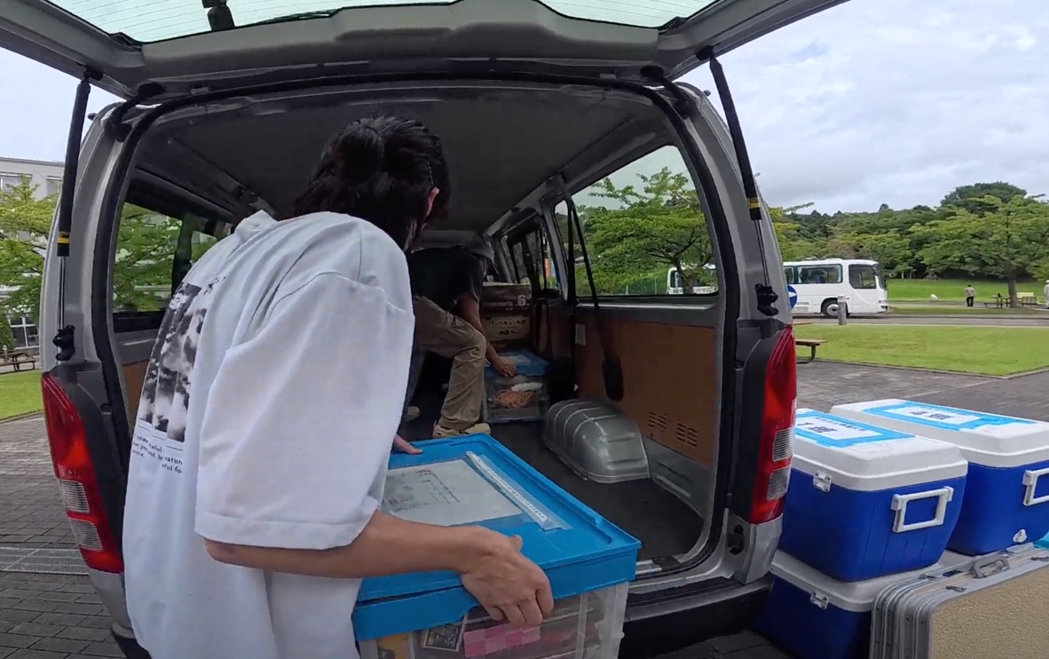 たくさんの荷物を車に積み込み、到着後すぐ開校式を行いました。