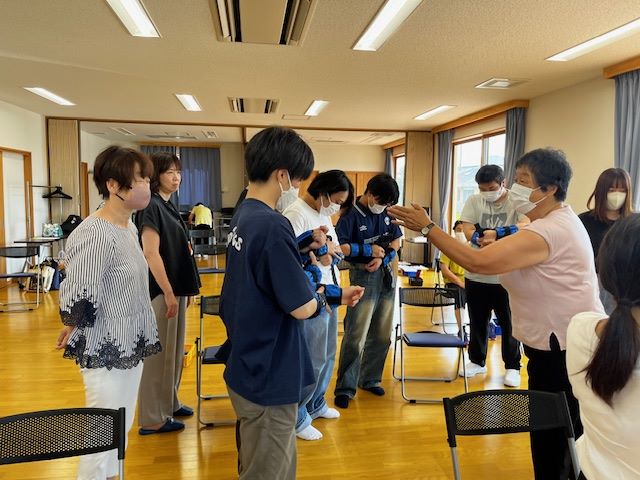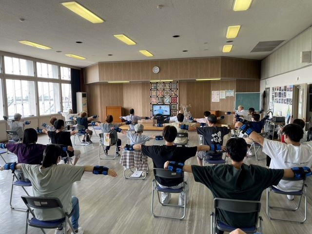 健康維持のために実際に東松島市で実施している百歳体操も一緒に体験させていただきました。