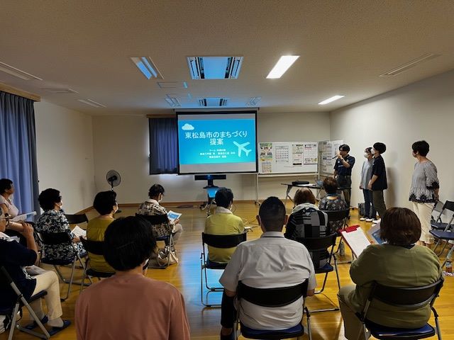 学生が考えた提案を、実際に東松島市(亀岡地区?三角公園自治会)の皆様に聞いていただきました。