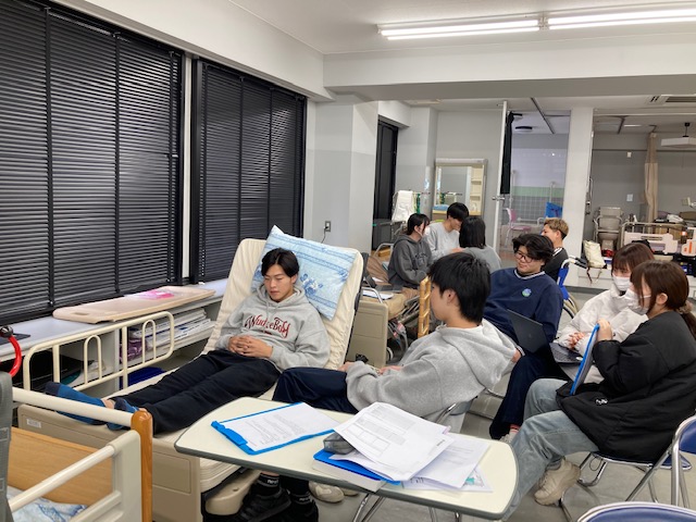 身体障害作業療法学演習は、脳卒中による片麻痺、脊髄損傷、パーキンソン病などの変性疾患などによる機能障害によって日常生活能力が低下した人への支援技術を学びます。12月3日は姿勢について学びました。
