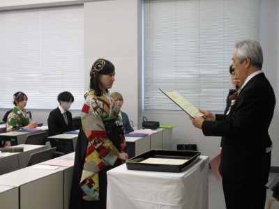 臨床工学科の相澤学科長より、一人ひとりに学位記が手渡されました。