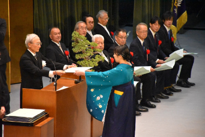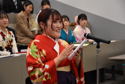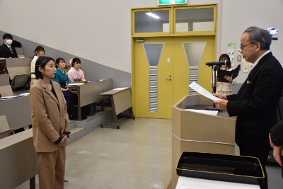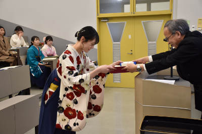 学生一人一人に学位が授与され、その後、優秀な成績を修めた学生やスポーツ等を頑張った学生に対し、各種表彰を行いました。