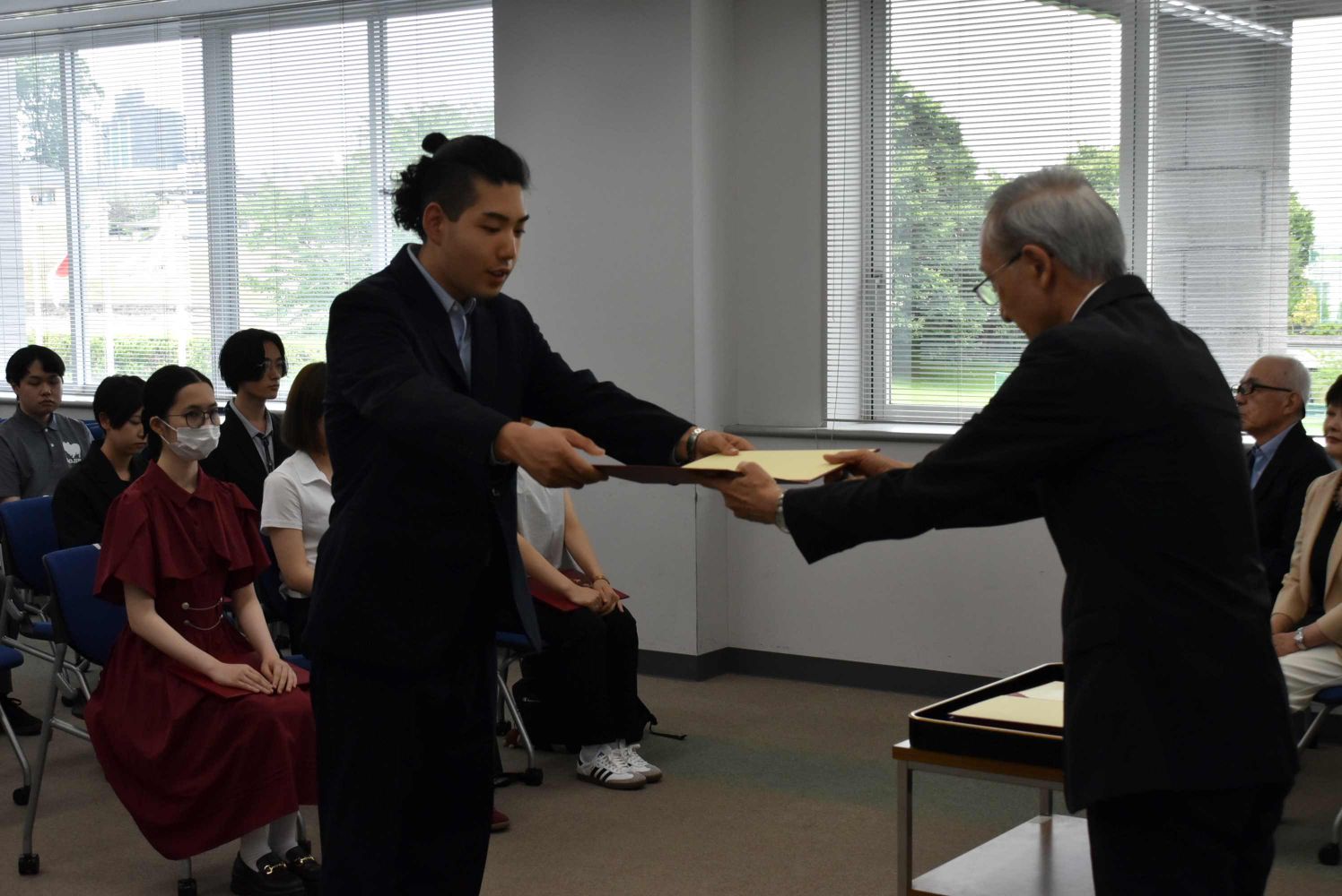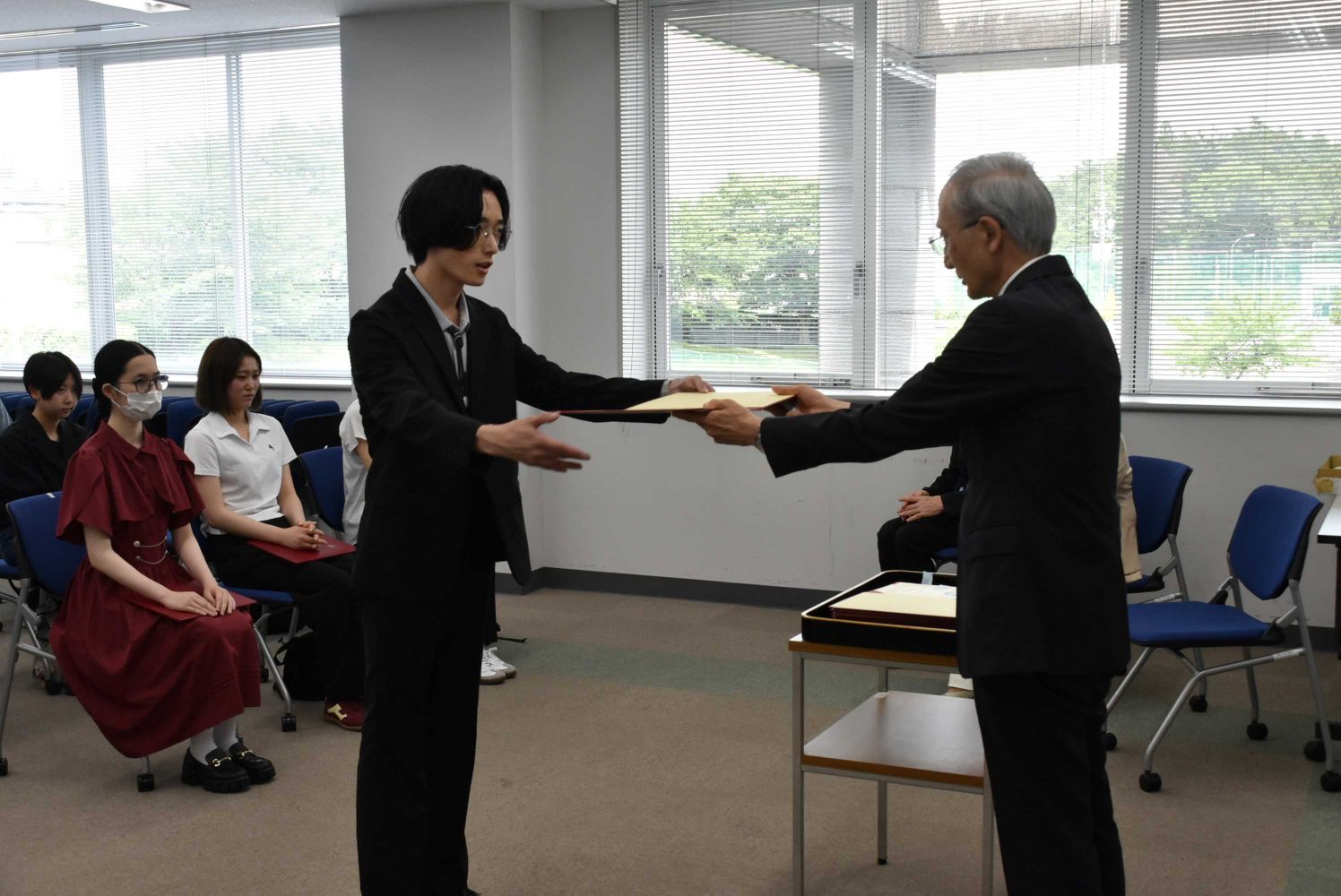 2025年6月30日に、学内の成績優秀者表彰が行われ、加賀谷学長から学生に賞状が手渡されました。
