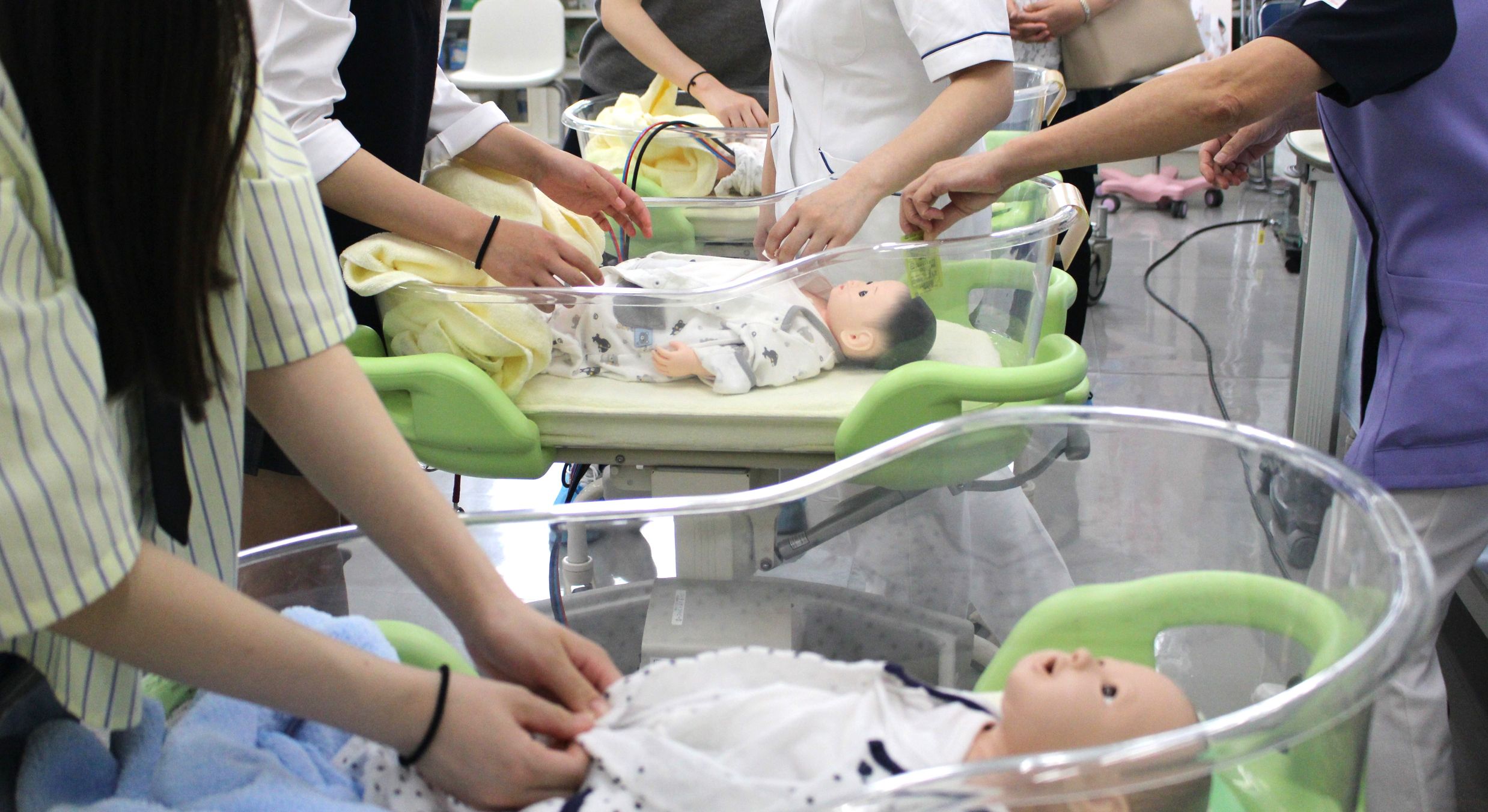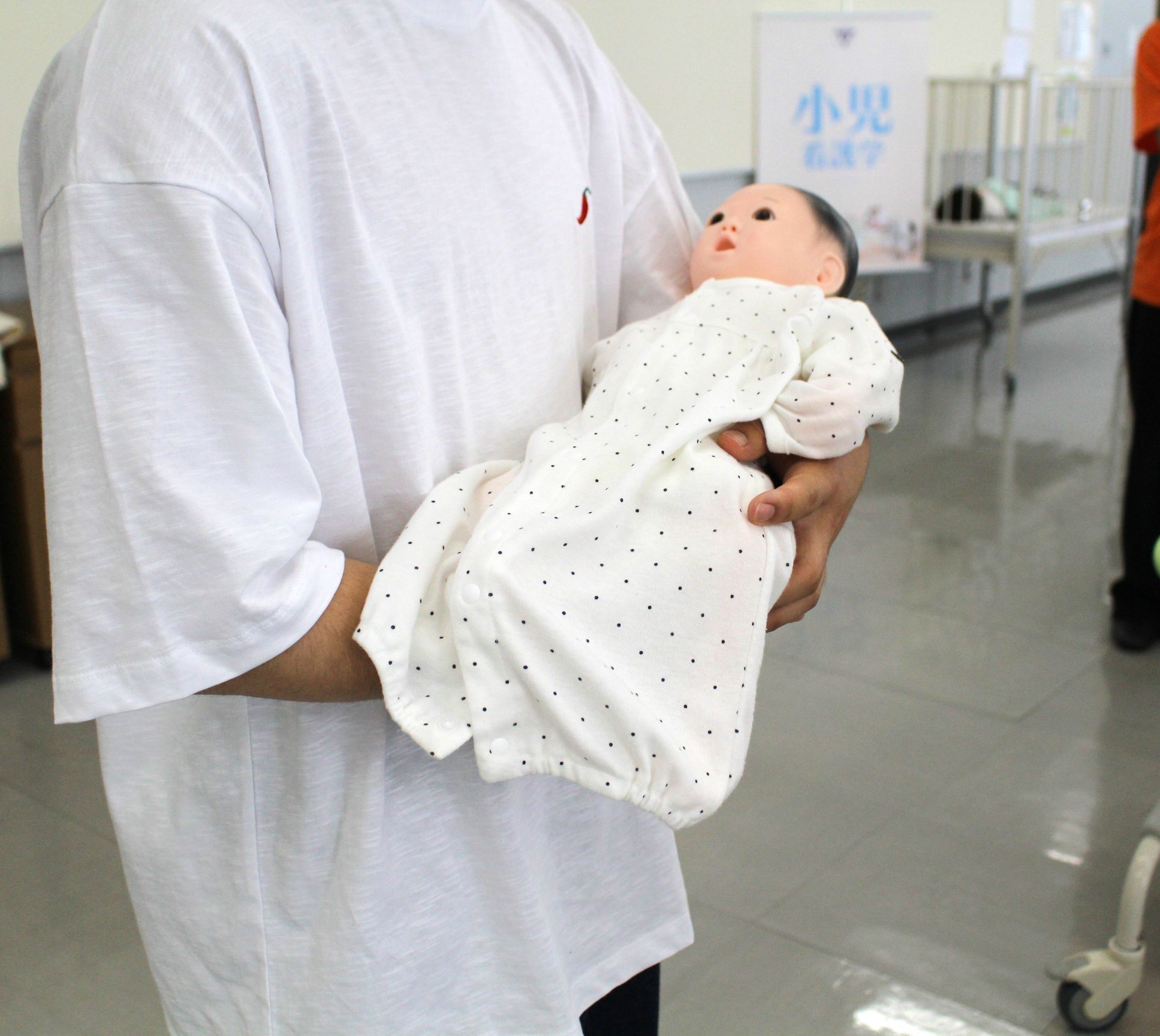 母性看護学領域コーナーでは、赤ちゃんのモデルを使用し