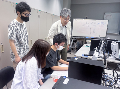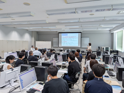 オープンキャンパスは、学科紹介、施設見学体験、模擬授業、在校生とのフリートークなど多彩なプログラムを通じて来場者の方々にとって有意義な時間となりました。模擬授業は、音の合成、チャットプログラムによるネットワーク体験、ARゲーム制作などのトピックを通じて、本学科の学びを体験していただきました。最後のフリートークでは、在校生を交えて入試体験談や学びの魅力、就職活動について、和やかな意見交換が行われました。このような交流によって、参加者の皆様の本学科の学びへの理解が深められ、関心を持っていただけたことを願っています。