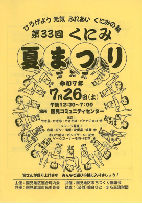 7月26日(土)、国見コミュニティセンターで開催された第33回国見夏まつりに本学の学生がスタッフとして参加しました。