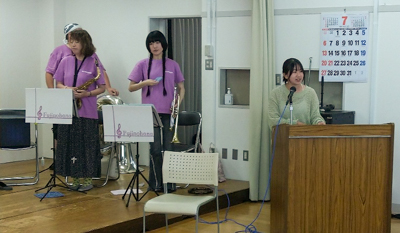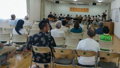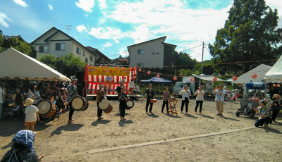 国見コミュニティセンター駐車場の“お祭り広場”で行われた「仙臺粋人」の演奏の様子