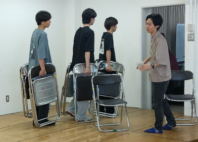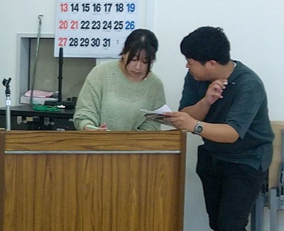 本学生の活動の様子(上が司会進行、下が舞台転換の作業)