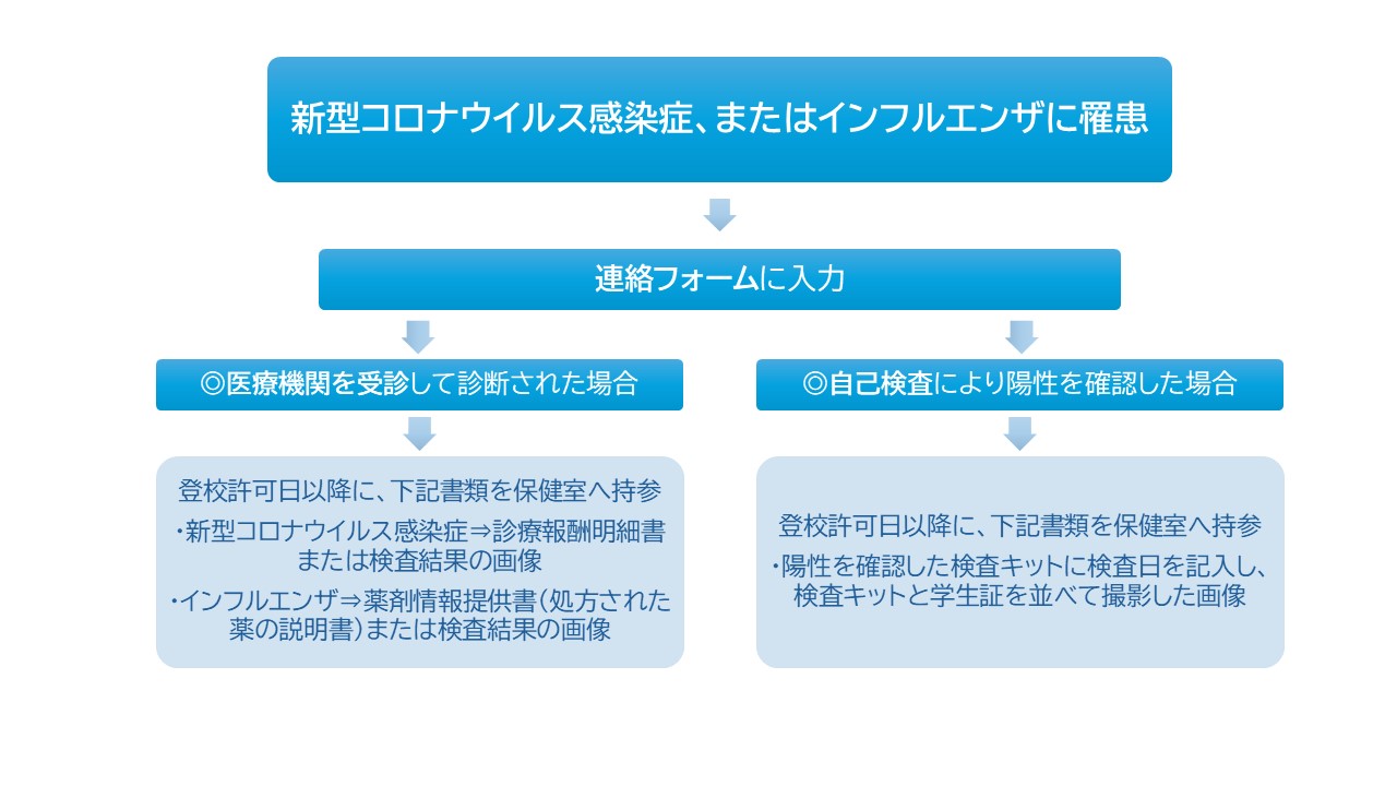 | 定期健康診断 | 学校保健安全法に基づき、毎年4月に全学生を対象として定期健康診断を実施しています。 詳細をホームページ、ポータルサイトで確認し、指定日時に必ず受診してください。 健康診断の事後措置として二次検査や保健指導も行っています。 |