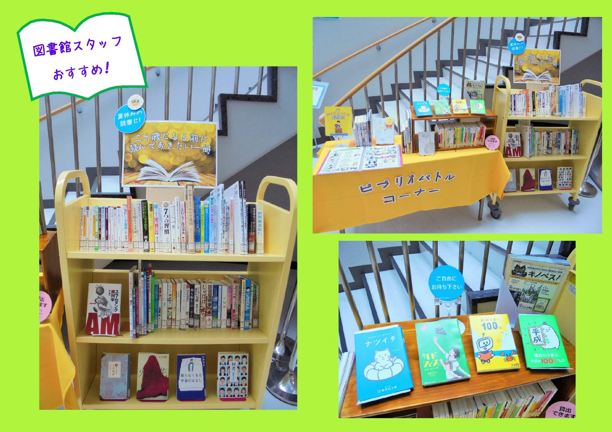 夏の読書に何を読もうか迷っている方、面白い本を探している方、図書館までお越しください!