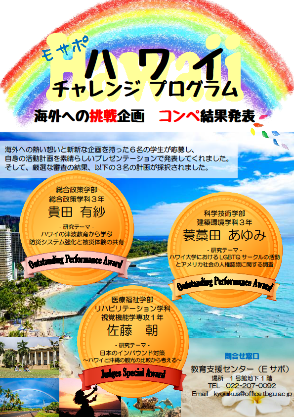 『輝け!TBGU生 Eサポ ハワイチャレンジプログラム』 結果発表