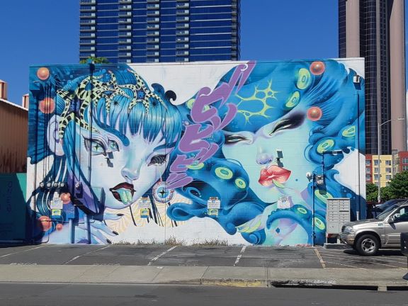 カカアコのウォールアートを見たり、近くの漁港でポキを食べたりしました。