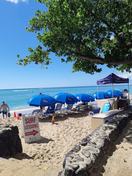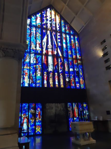 ステンドグラスにいかりの模様があしらわれていて、教会でもハワイらしさを感じることができました。