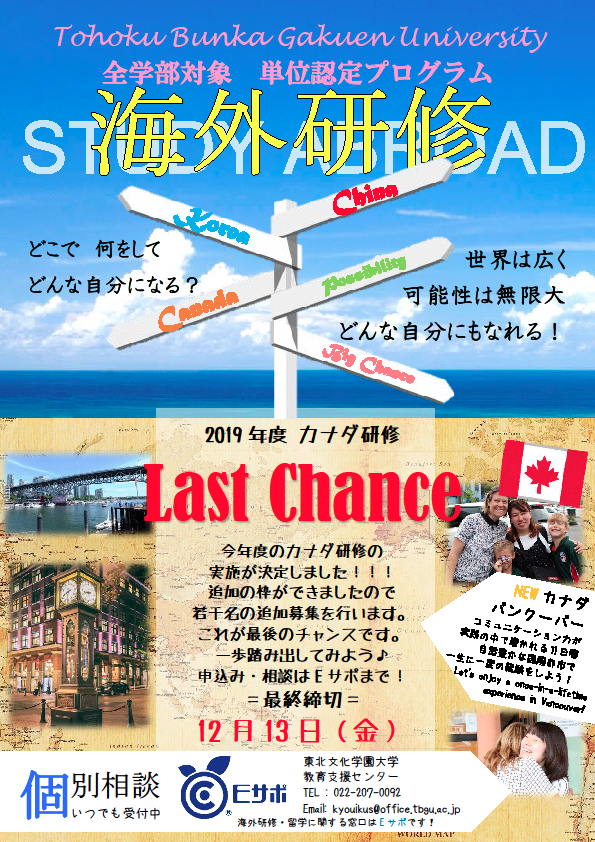 先月、海外研修の申込みを締め切り、今年度のカナダ研修の開催が確定しました。