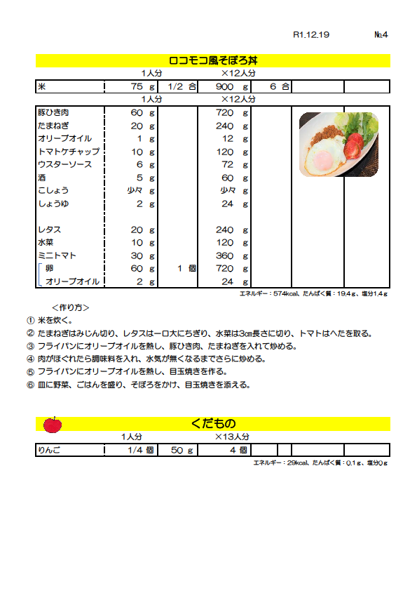 お楽しみの4日目のメニューはこちらです。
