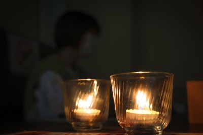 17時00分から5分間電気を消し、ロウソクを点火。その雰囲気が変わるだけで時間がとまったかのようでした。