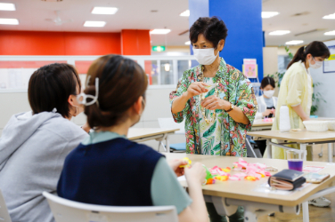 レイを楽しく作りながら、英会話?時に日本語を交えながら、優しくレクチャーしてくれます?