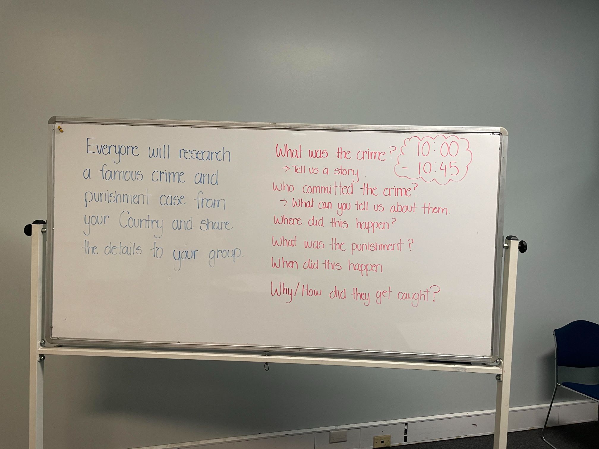 本日は2日目の授業で、各国の犯罪と処罰について話し合いました。